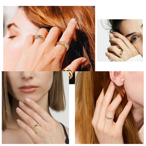 • Unique Design: The 9 gold chunky rings have 9 different special shapes, which will help you solve the difficulty of your choice! Each ring is golden, stylish and simple, without looking old-fashioned. They can not only be worn alone, but also can be worn as a stacking ring.