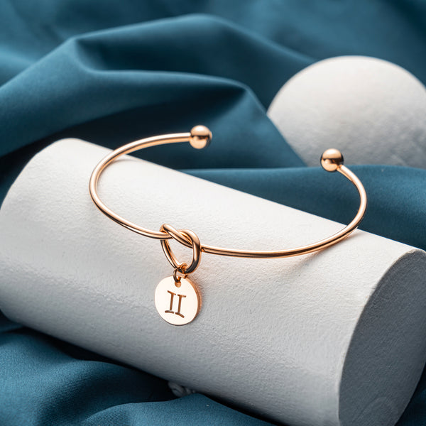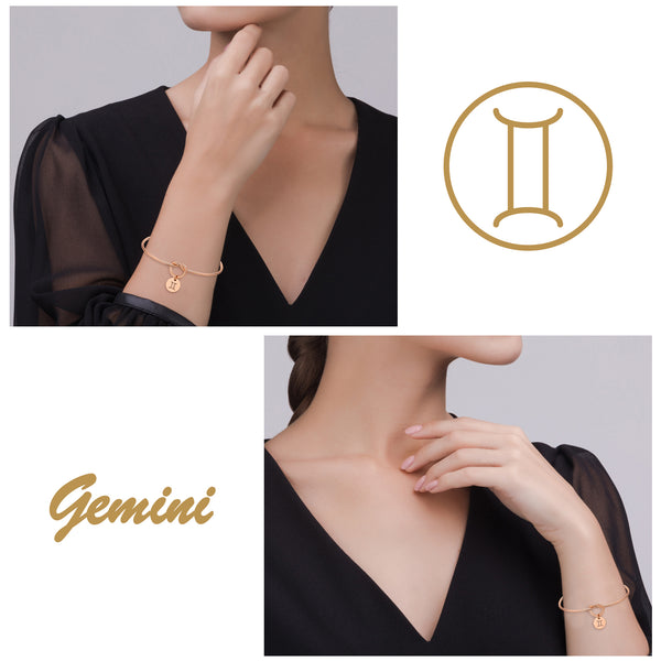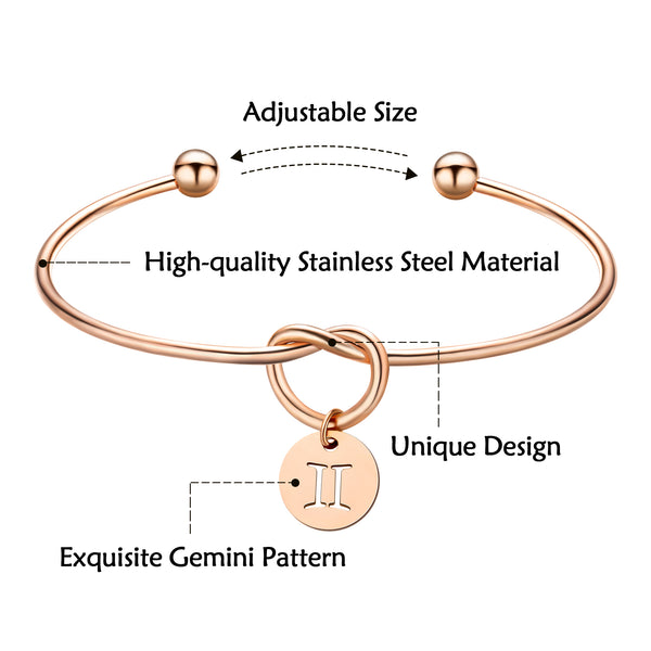 - Unique Design: The most unique design of this bracelet is that tie the knot cuff bangle with zodiac signs disc charm, the circle on the bracelet is engraved with the Gemini sign. And the bracelet is adjustable, easy to put on and take off.